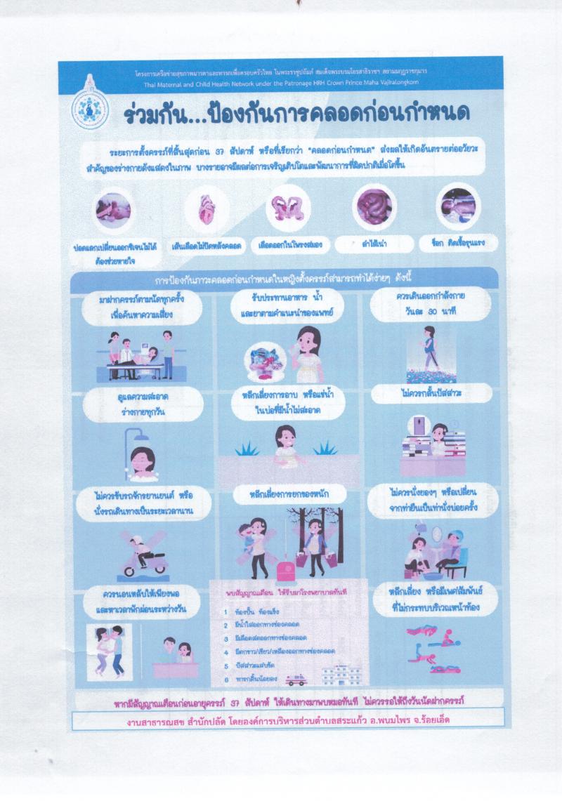 ป้ายประชาสัมพันธ์ สร้างเสริมสุขภาพเชิงรุกเพื่อลดภาวะคลอดก่อนกำหนด