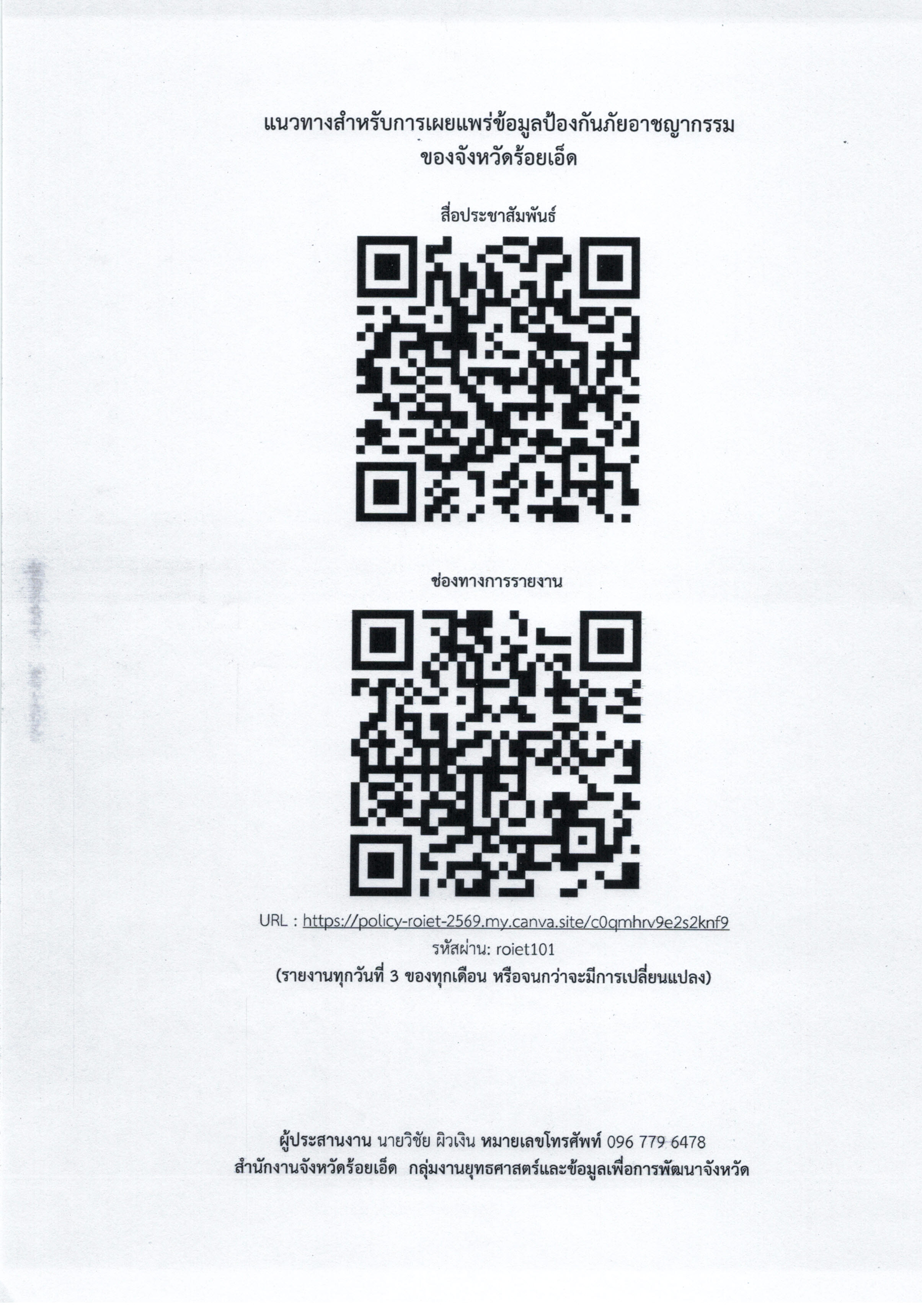 การเผยแพร่ข้อมูลเกี่ยวกับการเสริมสร้างการรับรู้ภัยอาชญากรรมออนไลน์ต่อประชาชน